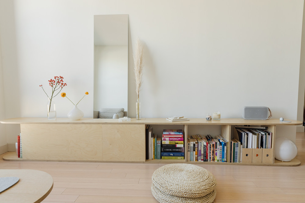 When space is at a premium, even furniture must serve multiple purposes. Joanna Hawley of Jojotastic uses her credenza that holds the TV to store extra books, bedding, and winter clothing. This helps her make the most of her 640 square-foot home. “Anything that becomes part of our space and day-to-day lives must serve multiple purposes!” she tells us.