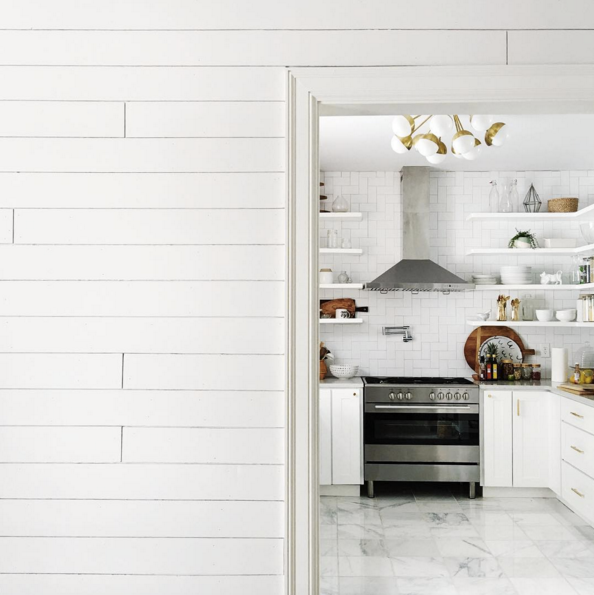 These white wood walls framing a white-tiled kitchen make up a good portion of our new dream home. (Thanks, @elsielarson!)