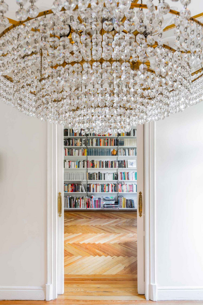 We’re not sure what we’re more jealous of—the stunning chandelier or impressive home library!