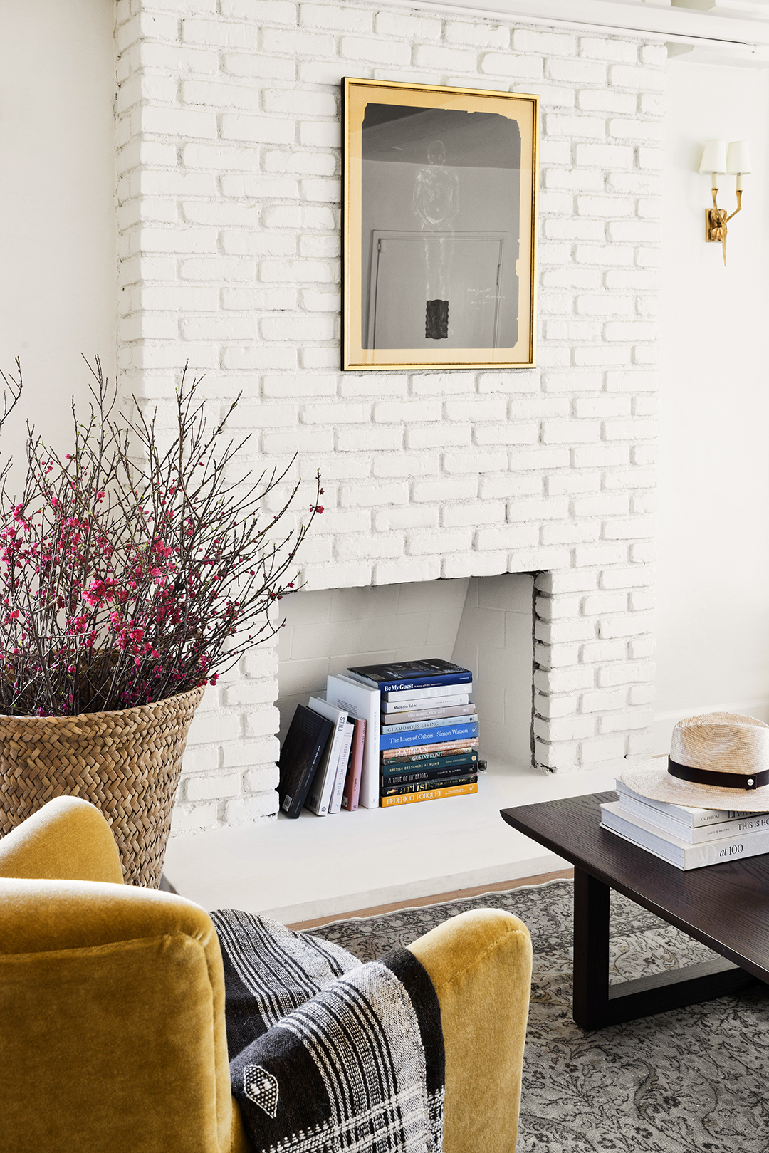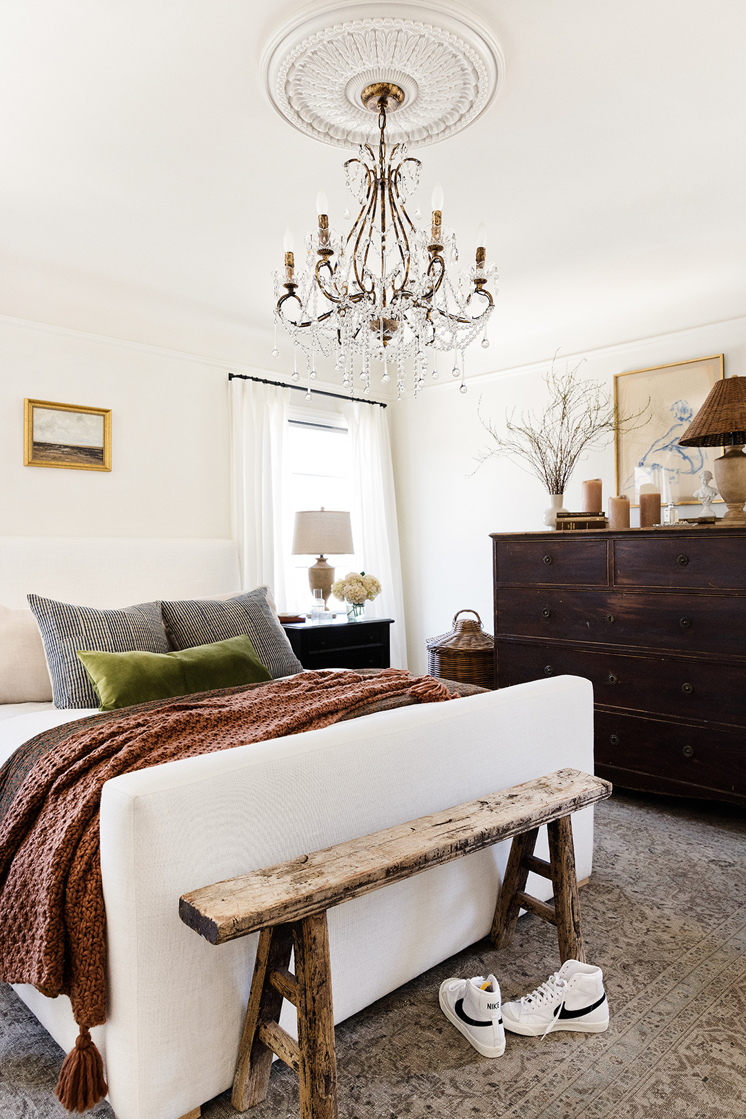Even as she gets ready to move out this summer, Brown is still treating the place as a practice ground. “I was looking to experiment in order to find my forever pieces,” she explains, by which she means “furniture I won’t want to swap out every six months.” Certain items, like her mustard wingback chairs from Maiden Home, were instant keepers. But her antique dresser and slipcovered bed, a McGee & Co. piece, were late-in-the-game purchases. “I feel like I just got my bedroom where I want it, and now I have to take it apart again,” she says, laughing. Swapping things in and out is especially tempting when the backdrop is go-with-anything white walls dressed up with old-world molding.