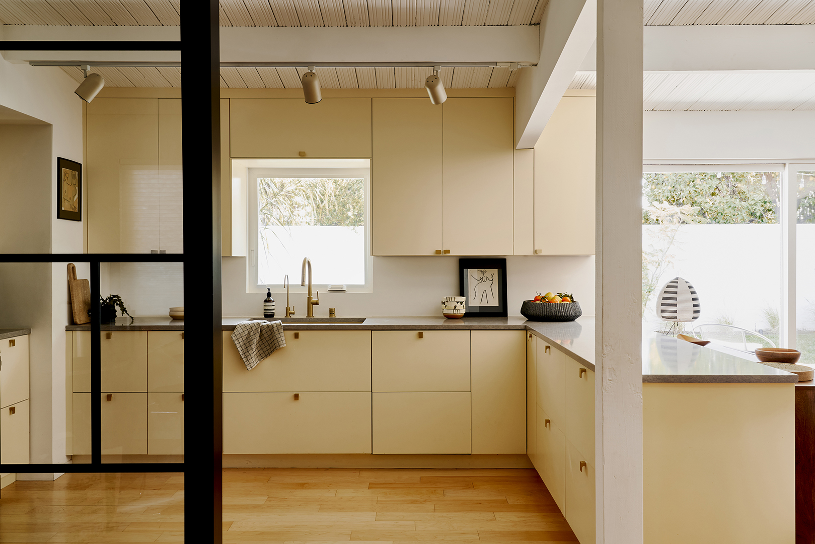 After months of house hunting, the couple came across an 1,800-square-foot, one-story home on a palm tree–lined street in the San Fernando Valley, and Jen immediately fell in love with the circa-1956 place’s beam ceilings, even though it was significantly smaller than their rental and in desperate need of a makeover. “The pandemic, and the challenges we crossed during that time, made it clear that buying a home for our family was a necessity,” she explains. “I wanted to invest and be smarter with my finances.”