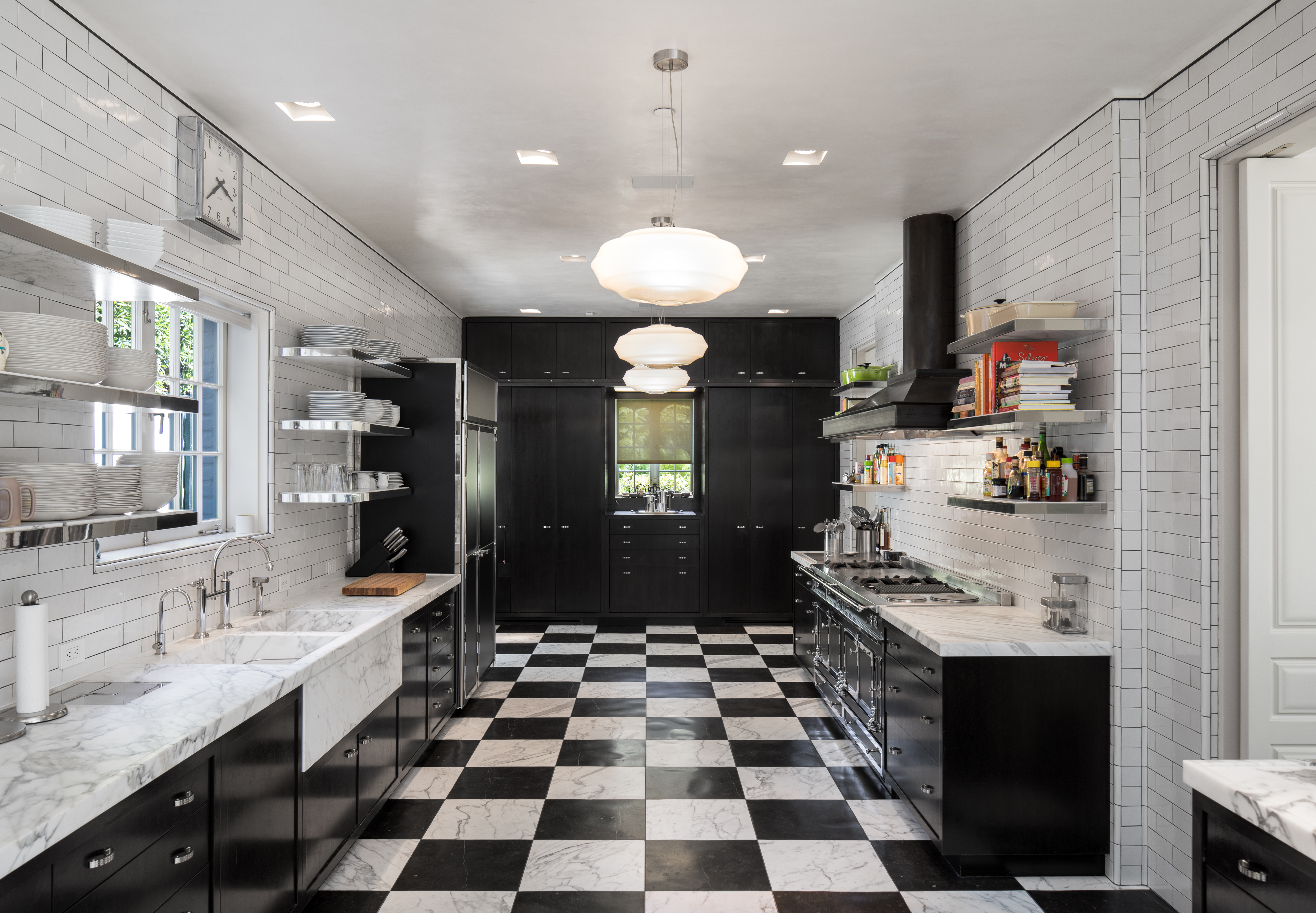 Aniston and Pitt went with retro kitchen flooring, opting for a black-and-white checkerboard pattern made of—no, that’s not vinyl!—marble. What’s more, it’s heated. If we’ve learned one thing from homeowners who have done similar remodels in the past, you’ll never regret having warm toes in the morning (even if the splurge means compromising on something else in your budget).