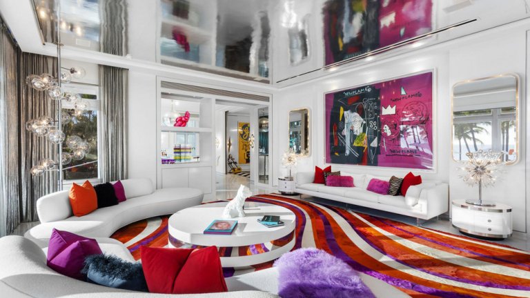 For the master bedroom, Shadley designed a platform bed (with a motorized television lift at the foot) that rests on lush silk and wool shag carpeting. Additionally, the room opens onto a private garden for optimal relaxation and serenity.