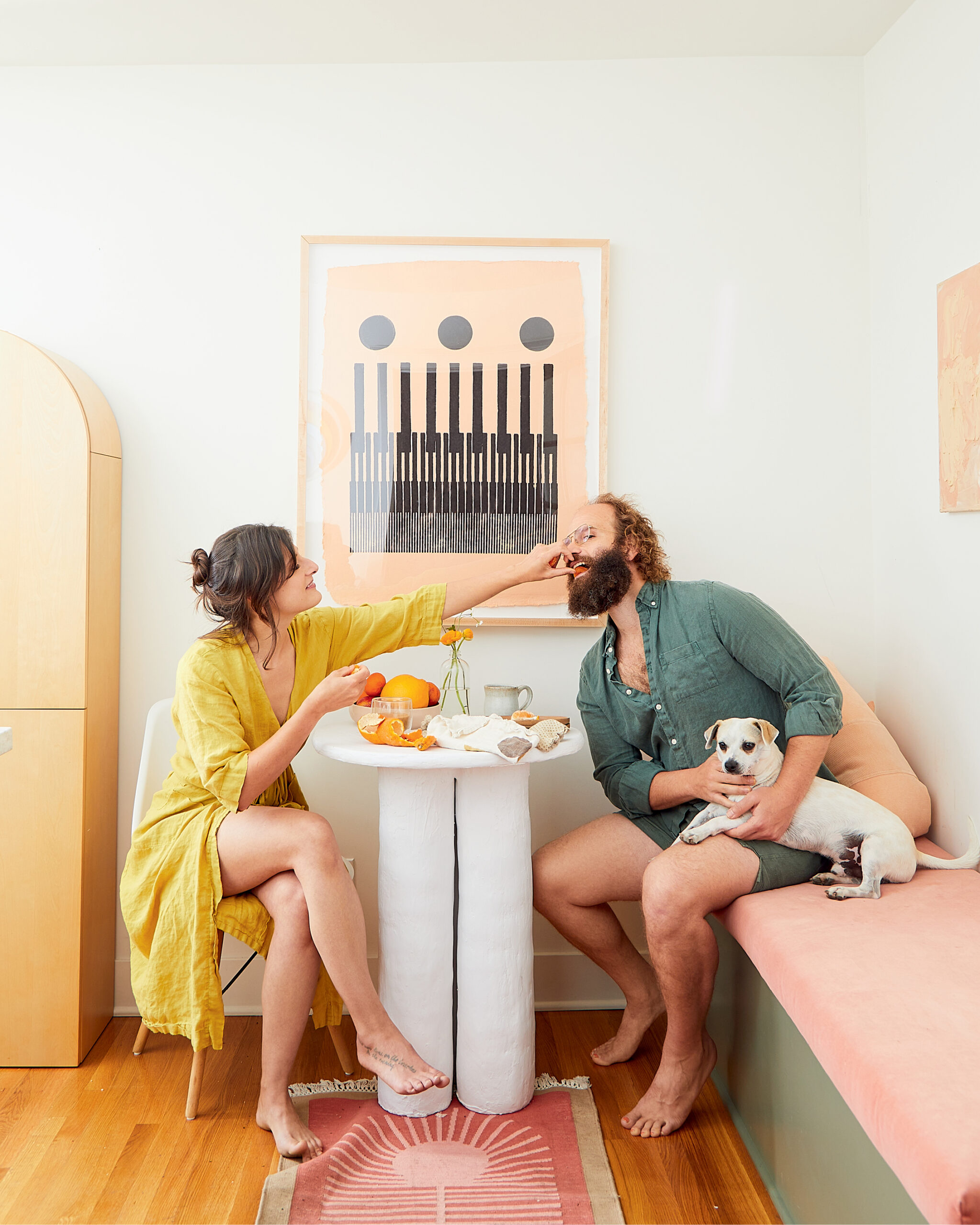 It’s not the huge new-to-L.A. home you might expect from a pair of successful creatives. “I want to give a shoutout to small spaces,” Sinclair says of the 1,250 square feet they reside in on the bottom floor (though the pair is in the process of remodeling the upstairs so Damuck can have her own test kitchen). “I’ve done a lot of location scouting in L.A. and I’ve seen the sprawling houses here. And I really appreciate that we have to pick and choose our furniture based on the home’s restrictions. I always think it’s so weird when you go to a palatial house and there is a room that no one has ever sat in.”