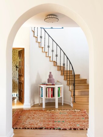 Plus, the property she found was too good to pass up: a 1930s bungalow a four-minute drive away that her friend was selling, with all the original quirks and “cool little nooks” still intact—telephone alcove and milk delivery door included.
