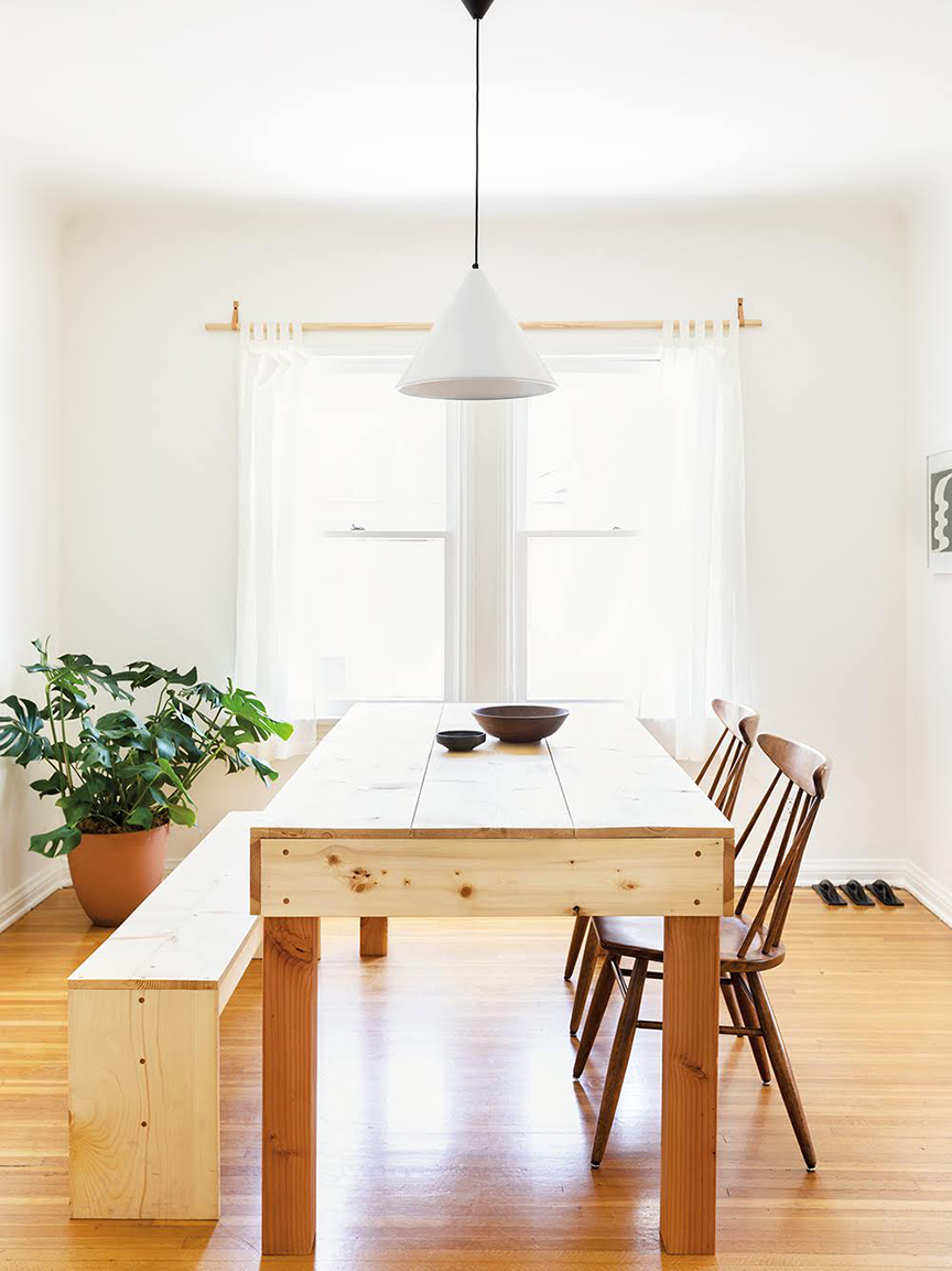 To find those unique pieces, Kamm checks out garage sales, junk shops, Craigslist—and, of course, makes the odd design herself. She insists that anyone can learn to build a basic table with enough YouTube tutorials and how-to books. The idea is to get away from the one-click purchase that gives instant gratification but less satisfaction in the long run. “To be comfortable enough in your space (and skin) is to be patient,” she says.