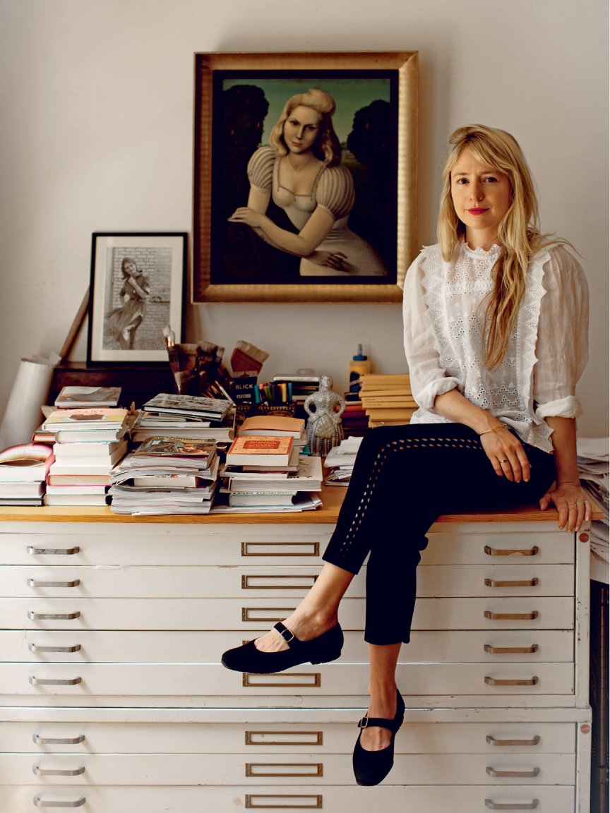 When she collaborated on Julia Sherman’s Salad for President, she immersed herself in cookbooks. When she designed wallpaper for the clubhouse of The Wing, she read biographies of iconic women. And certain references are perennials: back issues of The New Yorker, Eloise, the work of cartoonists like Daniel Clowes.