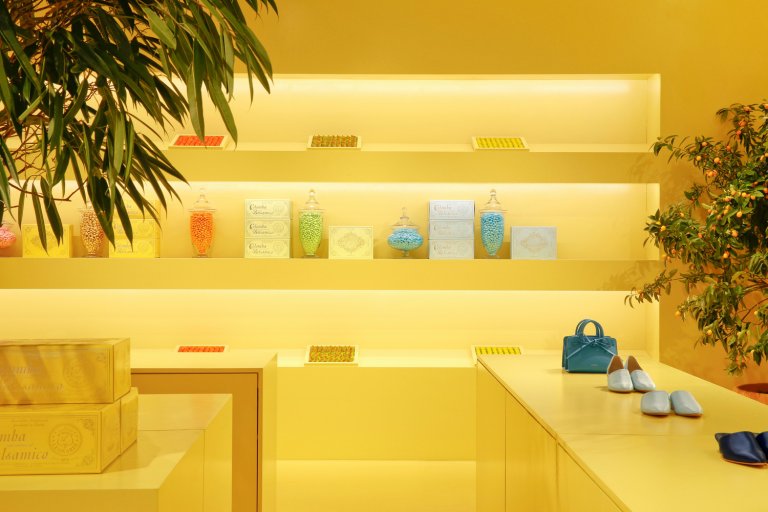 “The encaustic tile used at the entryway sets the tone for the entire villa,” says Adler. “It’s graphic, it’s groovy, and the sun pattern reminds you that you’re in the most fantastic desert oasis.”