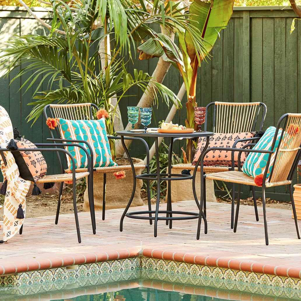 While the gray days of January may not seem like the ideal time to shop for garden furniture, think again. Jungalow just announced its first-ever outdoor collection for Target, and the ceramic planters, woven lighting, and furniture in bold, bohemian hues (cue a turquoise modular sofa and coral plant stand) rolls out between now and February 16. Designer Justina Blakeney teased the drop on her Instagram account yesterday, and it’s already prompted an all-star fan club that includes Joy Cho and Emily Henderson. In the comments, Henderson sung its praises, while Cho announced she’d be snagging the side tables.
