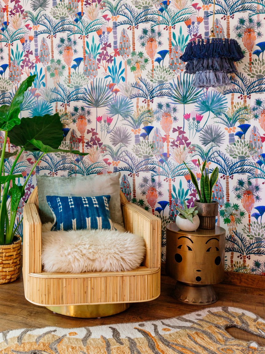 “My style is wild; it’s all about injecting color, pattern, and life into the home, and I think that wallpaper is one of the best ways to do that,” explains the designer, who credits her love of wallpaper to a fourth-grade lesson in pattern-repeating based on the works of artist M.C. Escher. “We created tessellations in that class, and ever since then, I’ve been quite obsessed with creating repeating patterns. For me, it’s almost a meditative practice.”
