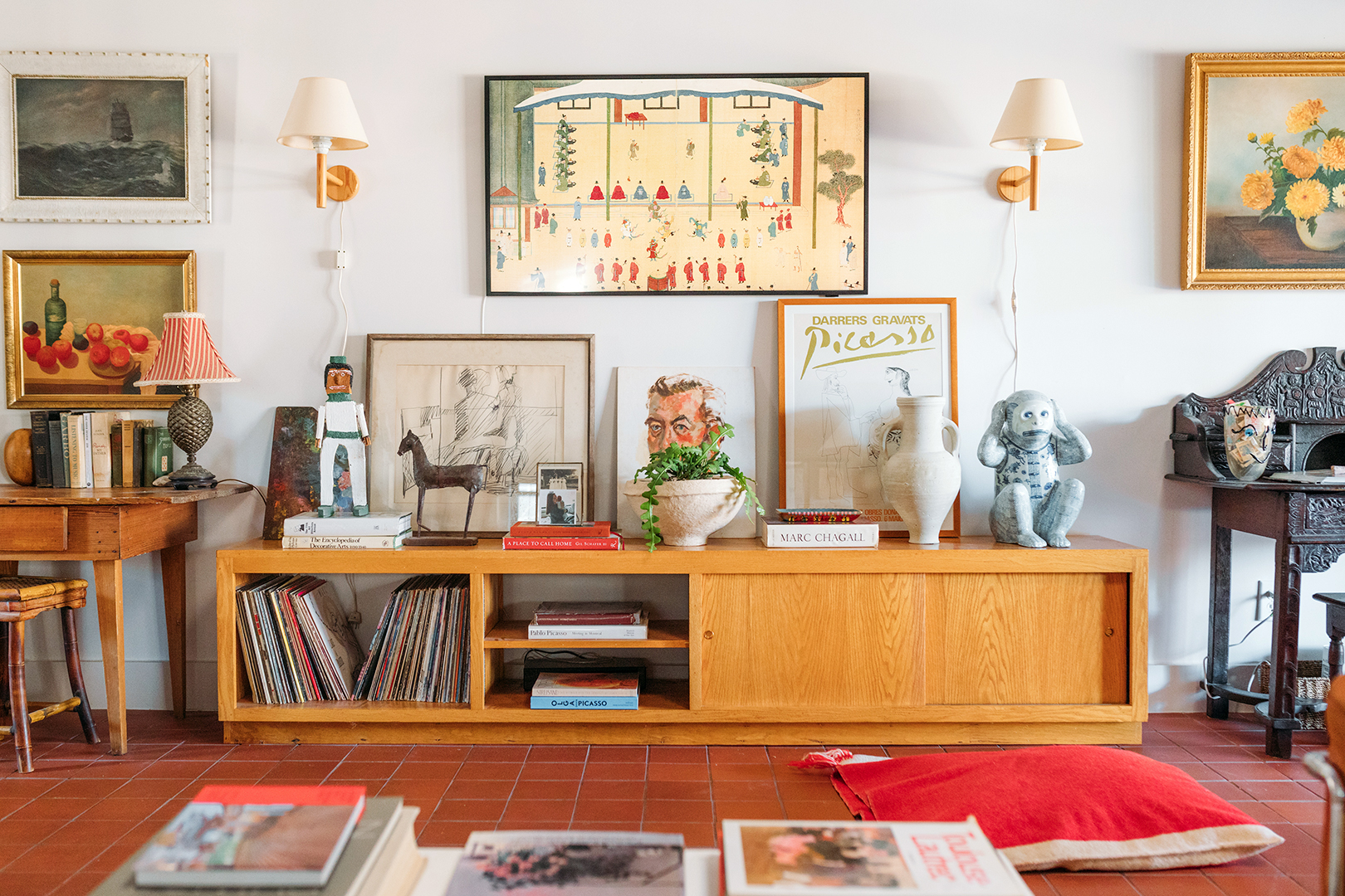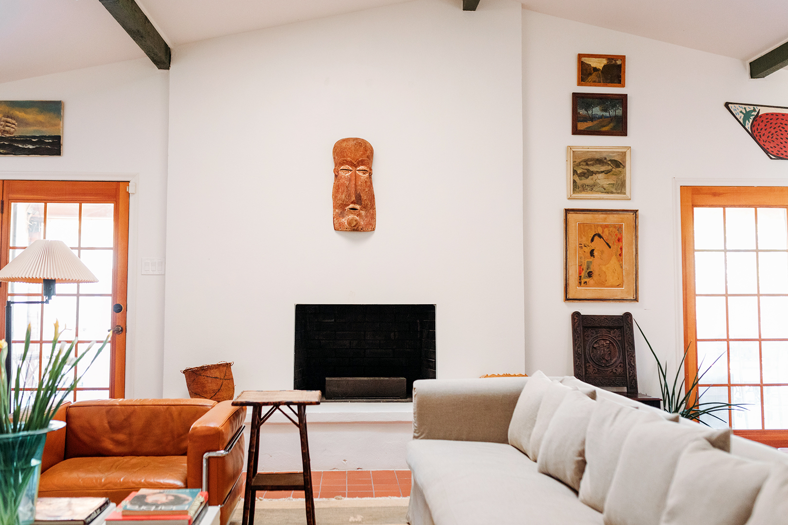 Coffee’s always-growing art collection (all estate-sale and Goodwill finds) ensures no room feels too technical. “I just hate when I walk into someone’s home and they have the same four prints I see every day on Instagram,” Coffee explains. She’s not precious about what she does hang up; the selections the family is currently living with, like the African masks that hang above Coffee’s desk, are a trial run of sorts. “If it doesn’t work, I can resell it,” she says. She changes the walls whenever the mood strikes—the portrait of Jesus in her office previously hung above the bathtub, and the living room’s gallery wall gets a new addition almost every week.