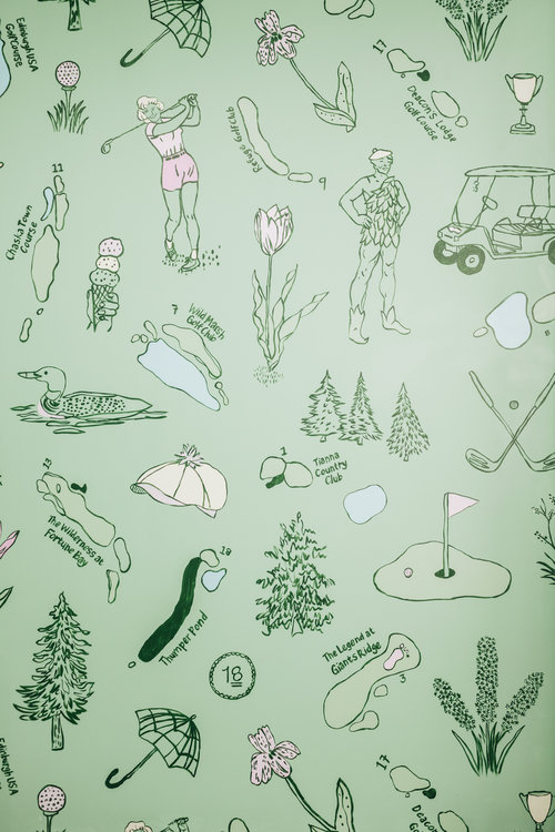 The duo’s take on a golf-inspired motif is one we can definitely get behind on. Their out-of-the-box style is materialized in the form of a monochromatic mint green palette with subtle pops of color and whimsical nods to their affinity for florals.