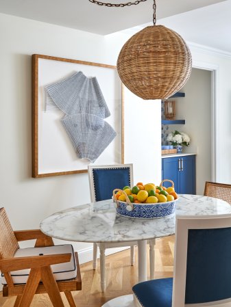 Design elements like high ceilings, original parquet flooring, and large windows that overlook Park Avenue add to the luxe feel. Elsewhere, a stunning kitchen, complete with terracotta tiles and a breakfast nook, takes a turn for the French countryside.