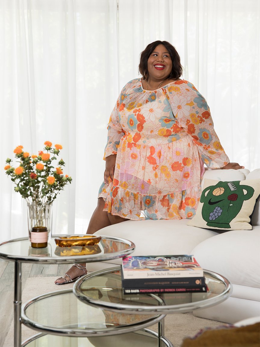 Marble, metal, suede…there are so many different materials in Brown’s home that, even if they are in neutrals, they still feel impactful. “I approach texture and scale the same way I do with getting dressed,” she says. “I have a pretty deep understanding of what it means to add color, proportion, and texture to elevate an outfit—especially being plus-size, where you really have to fight for style.”