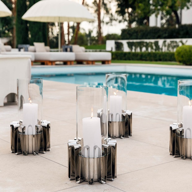 “Created from stainless steel and inspired by nature and organic forms, the collection embodies a lustrous spirit and vibrant energy,” Wearstler writes on Instagram. “Thoughtful use of materiality and intricate, sculptural details elevate the simple forms with a modernist expression.”