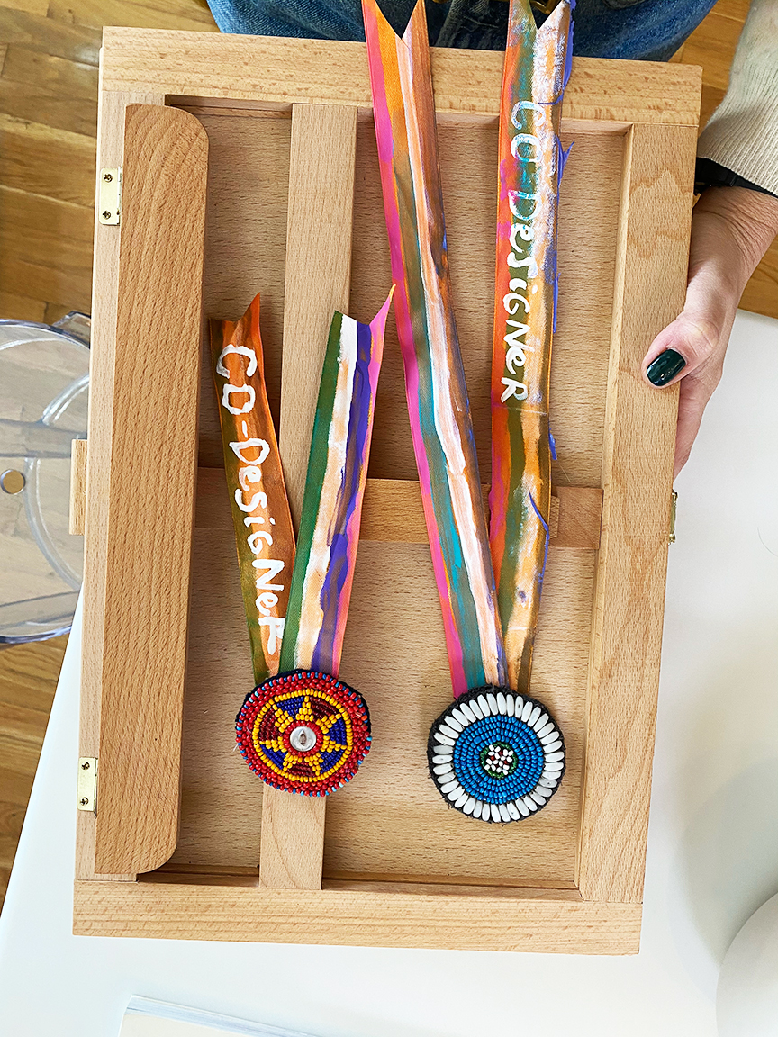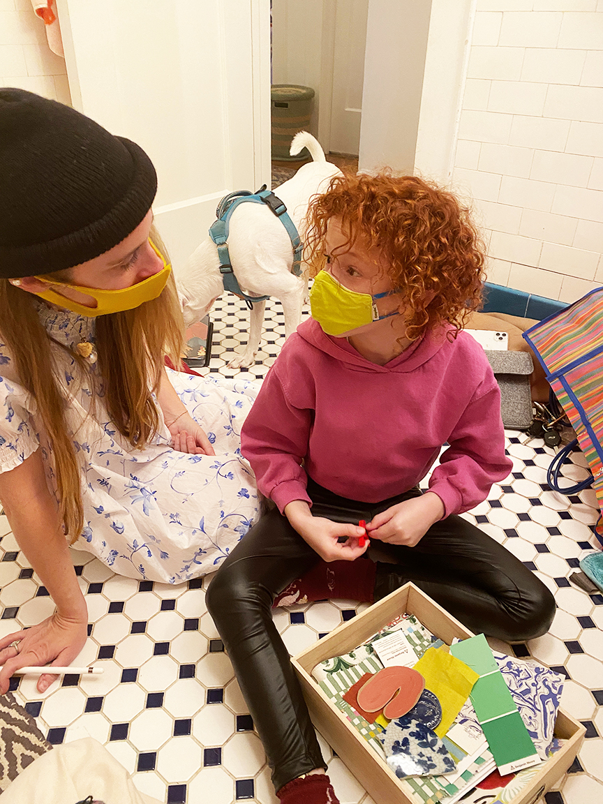 Having the sisters pick through her kit of beads and fabric scraps, taking note of the types of textures and colors they gravitate toward, was just the first step. It was also important to Velten-Lattrell to understand how the girls interacted with the spaces. When coming up with a new plan for the basement, that meant bringing her own kids over for a playdate–slash–work session. “In the suburbs, friends are always popping by, so we knew it would have to support a bunch of kids at different ages,” she explains. Teamwork makes the dream work, after all.