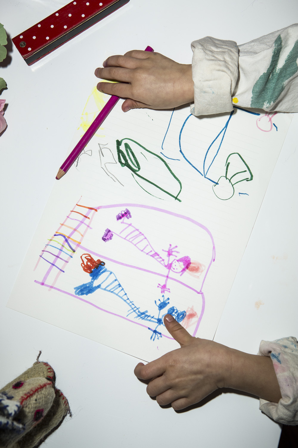 These days Quinn mostly takes the lead on her mega-canvas, adding new drawings whenever inspiration hits. “What makes the wall so special is how you can watch Quinn’s style and creativity evolve as she grows,” says Sullivan. What started out as abstract scribbles now resembles a wall full of her signature characters and scenes, which gives visitors a glimpse into her hyper-imaginative brain. At present, she’s particularly inspired by the comic book series Bone.