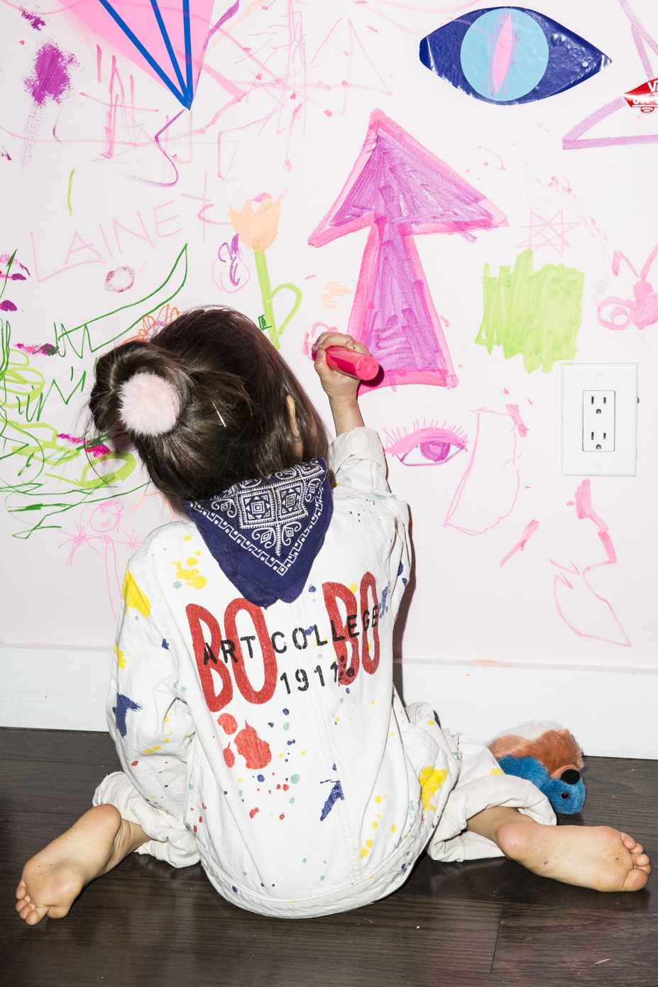 Domino executive creative director and supermom Kate Berry has one tip for parents everywhere, especially these days, when filling time with projects can seem like a second job: “Give your kids the necessary tools for creative freedom.” What does this mean for Berry and her 7-year-old daughter, Quinn? A graffiti wall.
