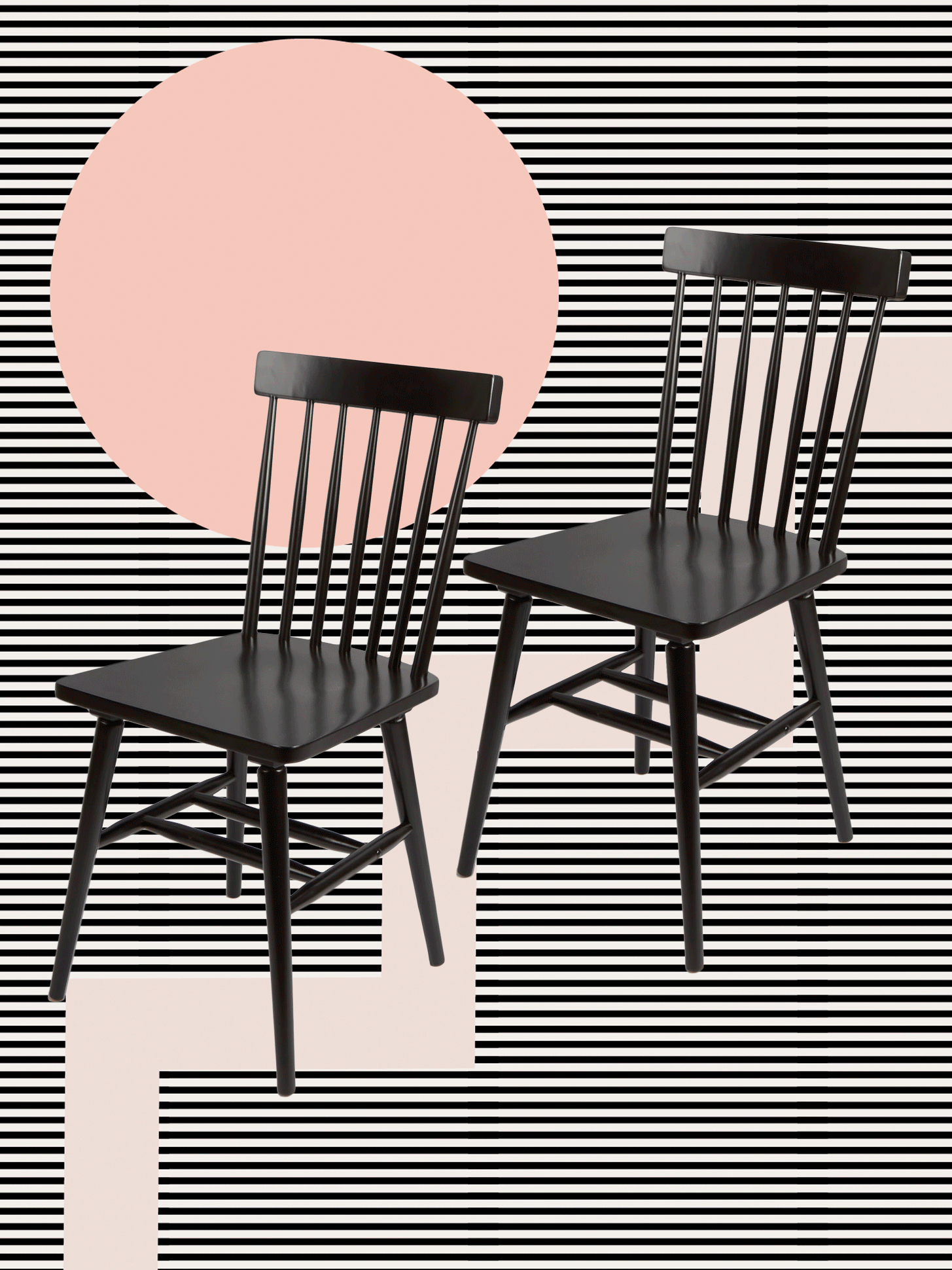 Put these chairs, a classic Windsor style in a sleek black finish, around the above wood table and revel in the contemporary cabin vibes.