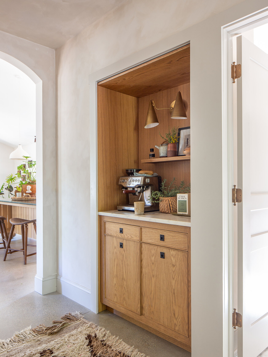 Biggest splurge: My last-minute white oak coffee bar from Wolf Wood Co. The space was meant to be a closet, but I decided it would be nice for my guests to have a dedicated (and beautiful) spot for beverages.