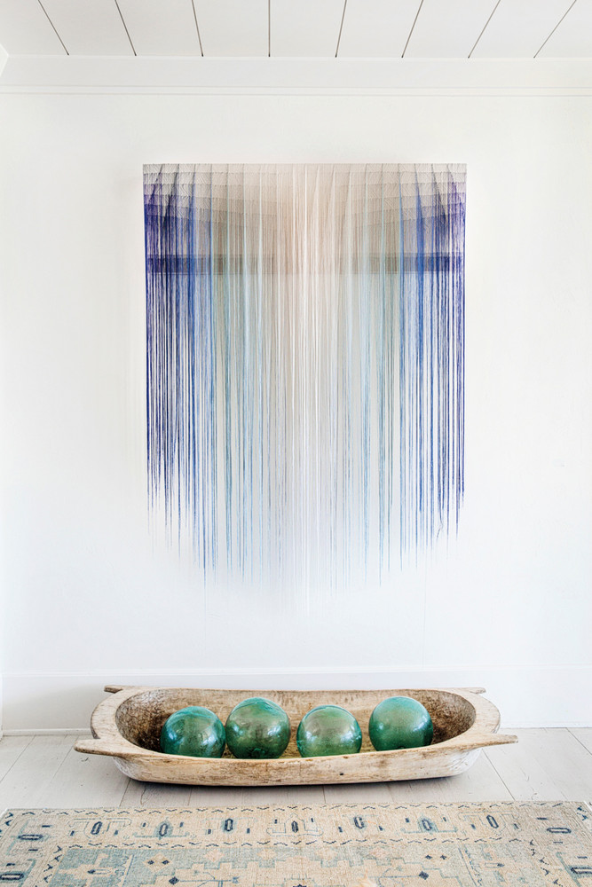 “Laura’s not interested in any kind of art you can see in someone else’s house or store,” says Cetrulo, who sought out pieces with personality—like the Donald Martiny abstract sculpture Beothuk hanging over the living room fireplace, which resembles an “enormous brushstroke and ocean wave all at once,” and Eric Blum’s Untitled No. 684, composed of ink, silk, and beeswax, in the mudroom.