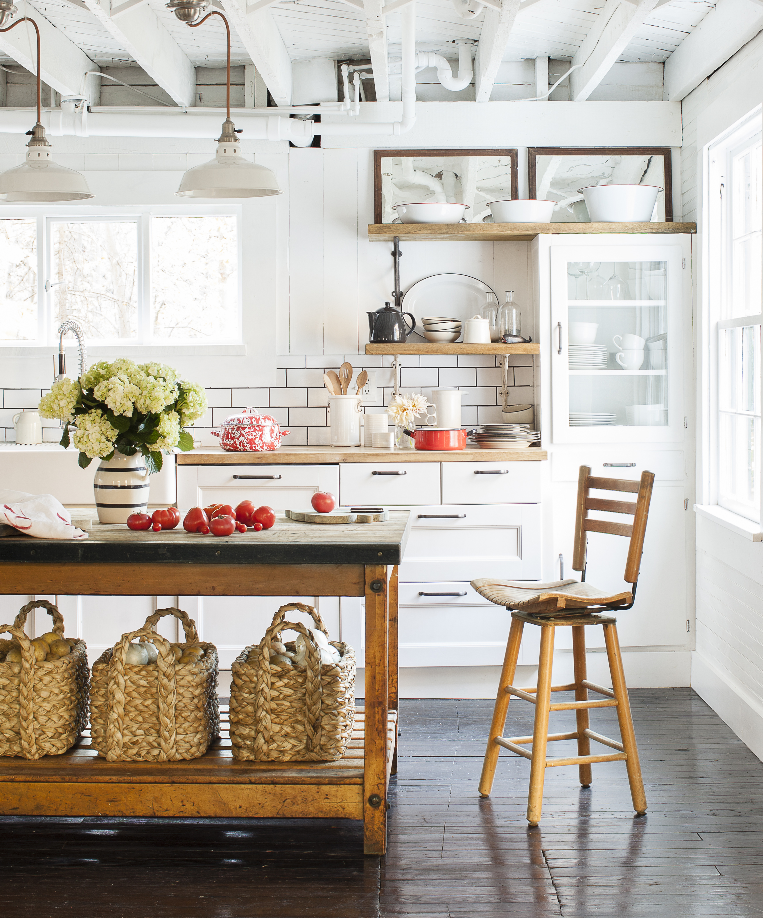 The reason that this kitchen doesn’t look like it was done on a budget is the accents. “I added vintage around it to disguise the IKEA feeling,” says Ford, pointing to the antique baker’s table that functions as the kitchen island. The glass cabinet in the corner was original to the home, and with a lick of white paint, it fits right in with the new additions. Complemented with sleek pulls, the combination is relaxed and warm. Consider this space proof that you don’t have to spend a fortune to get the designer’s signature look.