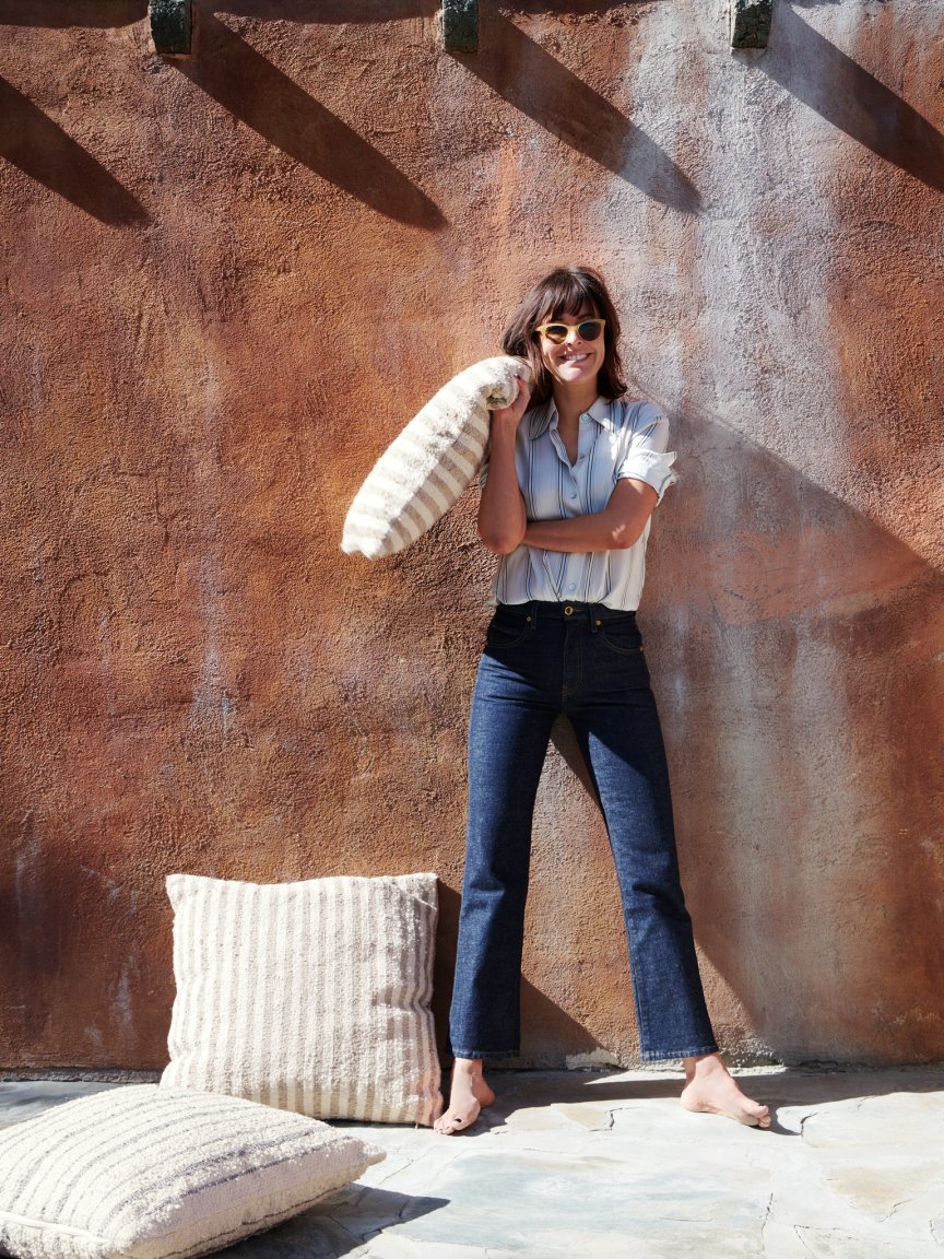 “How do we bring the serenity and zen of a vacation back home?” Leanne Ford asked herself when she started designing her third furniture and decor collection for Crate & Barrel. Building upon her last two launches with the brand—which went heavy on white oak, curved silhouettes, and slouchy sofas—the brand-new collaboration (it’s out today!) features Ford’s signature Mediterranean meets wabi-sabi meets Scandi aesthetic. The big difference this time is all the fresh, summer-approved textures—picture: curved counter stools, campaign-style pine desks, and weatherproof bouclé pillows.