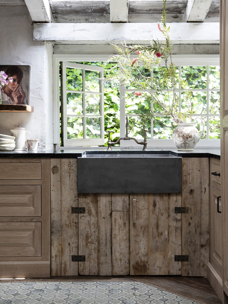 One of the first questions the new owners asked was, “Where would you have put your drinking glasses?” (At the time when they toured our kitchen, our cups were stowed away in a drawer.) I told them I would have installed a thick, heavy wood shelf straight across the big corner window in front of the sink. It’s not that you need more storage in that room, but it would have been a place to display pretty things that allows the light to shine through.