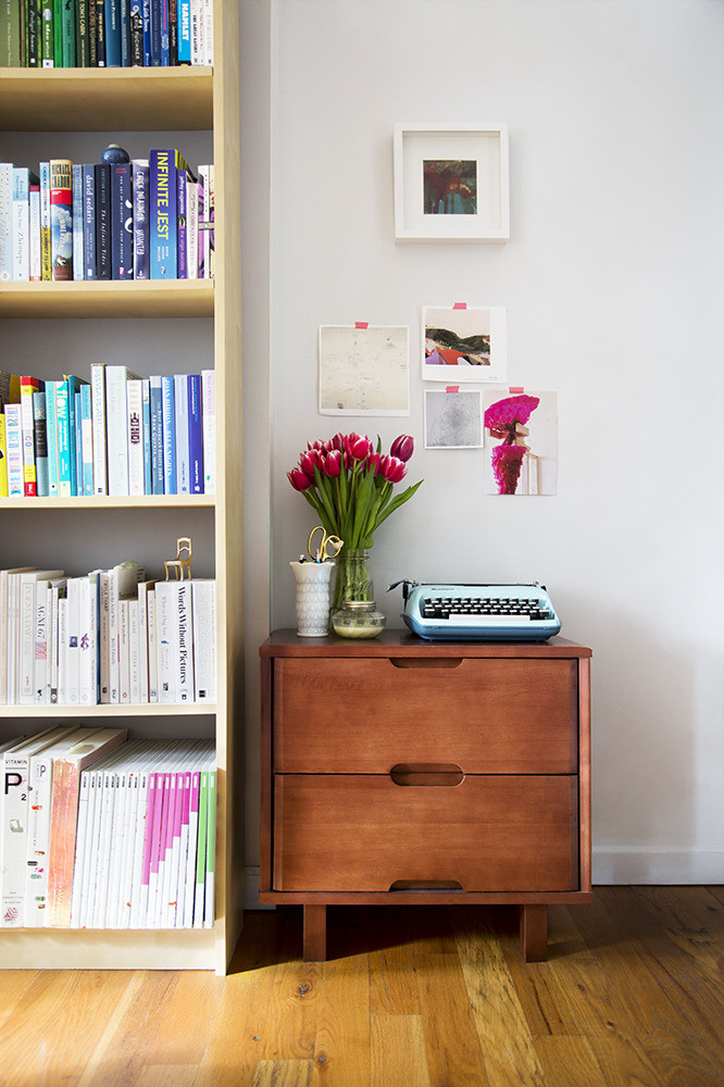 Farnsworth-Williams, artist turned first grade teacher with a penchant for diet coke, pops of cadium red, and ballet flats. She currently resides in Fort Greene, Brooklyn with husband, Heath, and their sweet-as-honey yellow lab, Elliott. We took a peek inside her 750-square-foot apartment, for an inspiring look at living large in small spaces.
