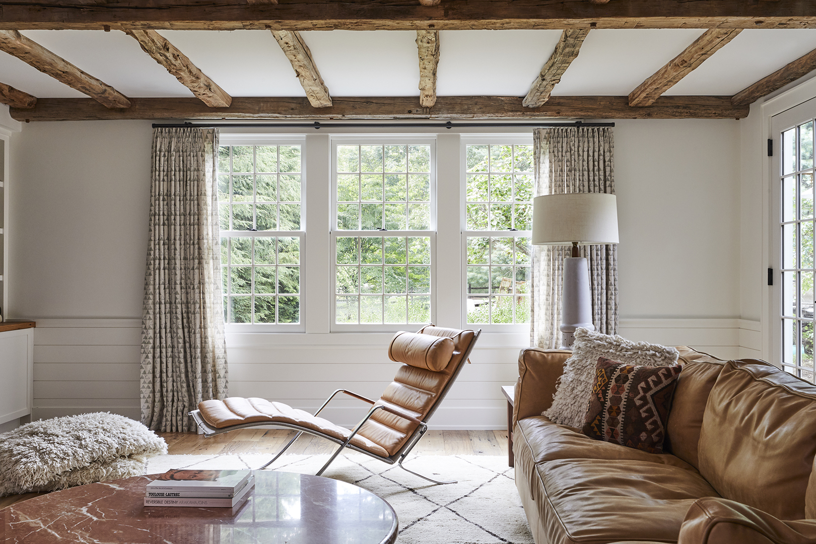 One person’s trash is another’s treasure, or at least that was the case when Shaunna Prissert learned about an old barn in upstate New York that had been completely taken apart. Prissert, who had recently moved from Manhattan to Weston, Connecticut, with her husband and their two young daughters, was in the middle of a renovation, led by interior designer Jennifer Bunsa, and was on the hunt for beams. When she got the call from a wood supplier that her builder, S&W Construction, had recommended, she immediately went to scoop them up. “People are often not so lucky as to get all of them from the same place,” says Prissert.
