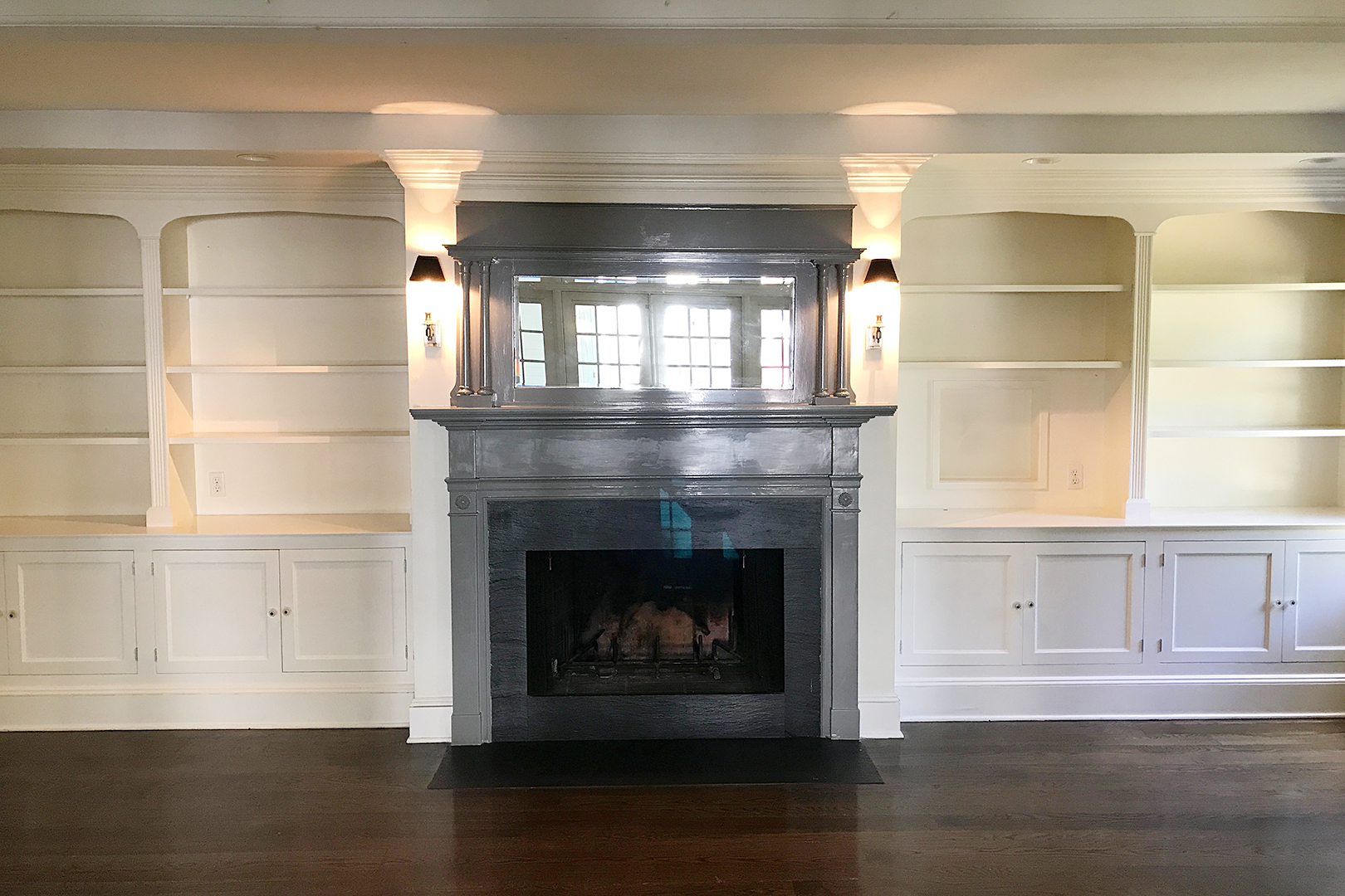 While it might not look like it, the bookcase was in rough shape, so the designer started from scratch and ditched the ornate molding for clean lines and ample storage. When coming up with the new design, she prioritized even shelving gaps, warm details like leather cabinet pulls, and designated cubbyholes for firewood. Whether the sun is shining or snow is falling, this is right where you want to be.