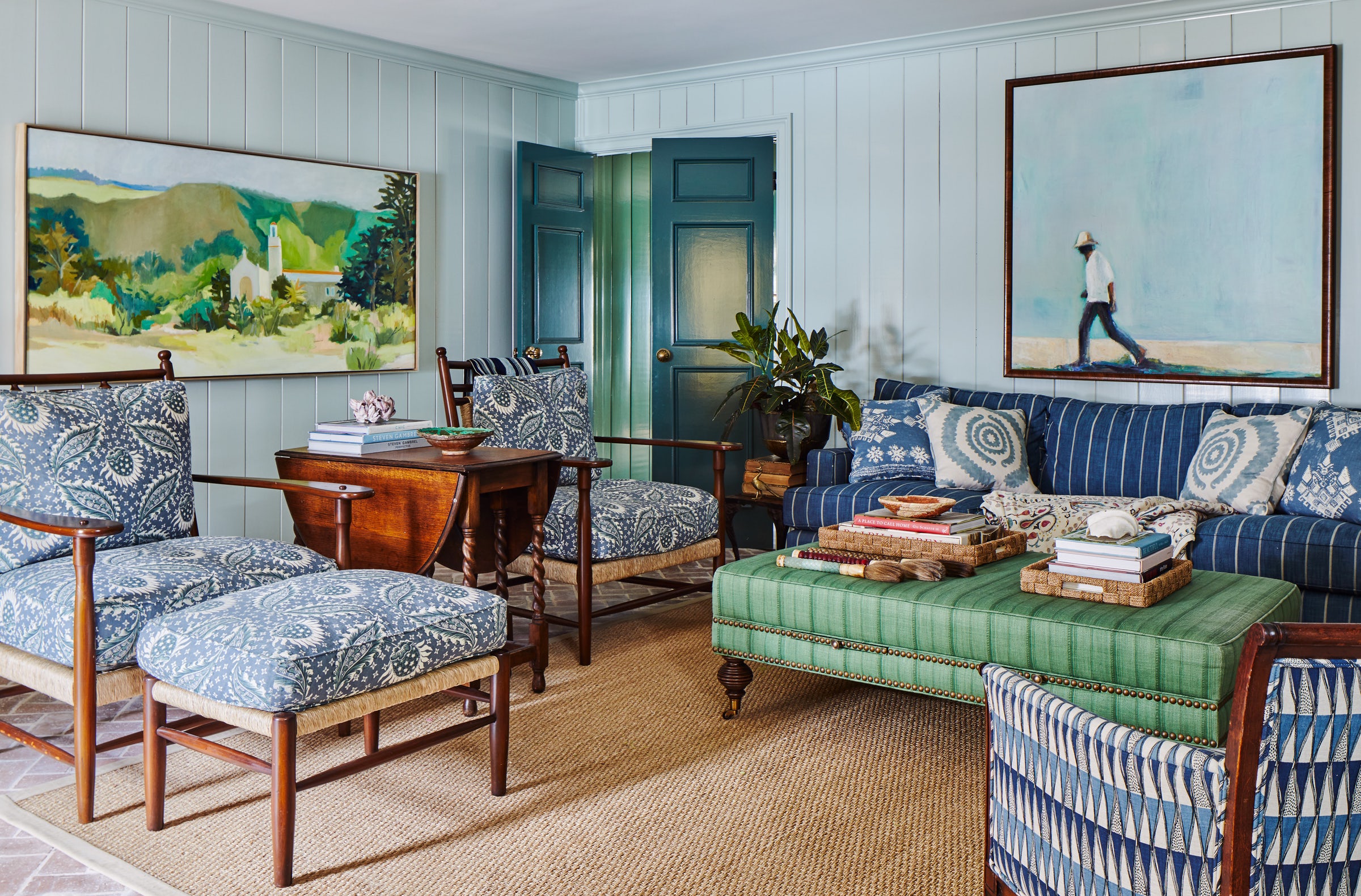 Light blues rule in Dallas, where locals see the versatile shade as ripe for just about any decorative opportunity. We like pairing it with complementary greens, as in this artful living room.