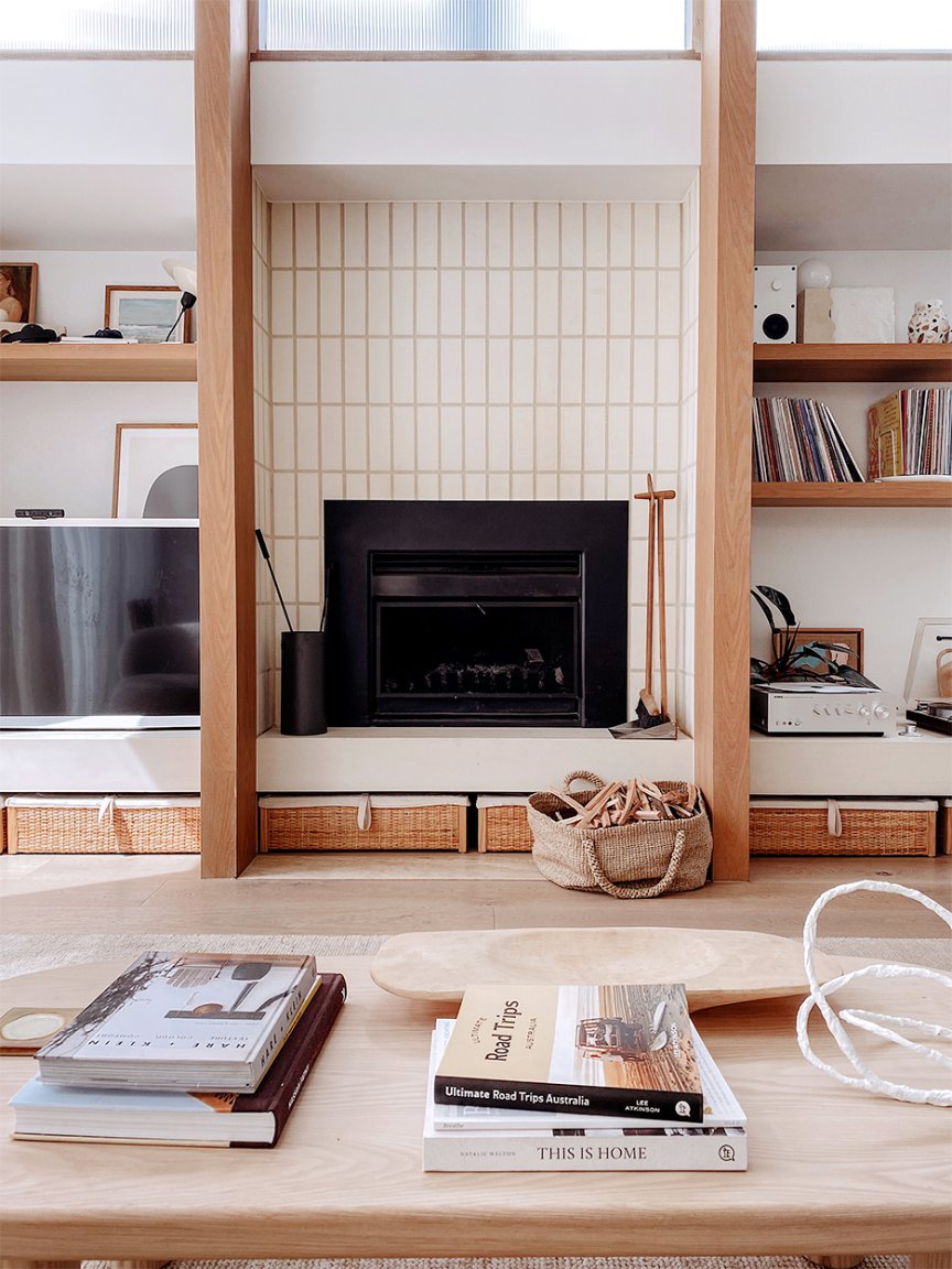 Under-the-bed bins, by design, are meant to fit in awkward places. Yes, literally under the bed, where they typically hold out-of-season clothes and extra linens. But they can work wonders elsewhere, too. Take Josh and Jenna Densten’s living room. The Melbourne-based parents of two use shallow braided-rattan baskets to store toys, fireplace wood, and vinyl records below a floating plinth. “Originally we liked the idea of being able to see the floor underneath the structure,” says Jenna. “We soon realized, as we sat on the sofa, that all we saw were dust bunnies.”