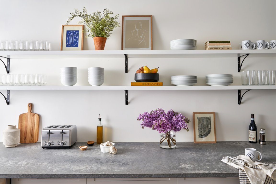 “It’s nice to invest in a couple of things that you guys love together. That can even be a DIY project: In previous rentals, I’ve actually removed kitchen cabinet doors that I didn’t find so attractive, and my roommates and I lined the cabinets with paper that we picked out together,” she says. “It’s fun to go all in on decorative pieces that make your kitchen feel light and happy. I think those items are more worth investing in than matching silverware.” Who knows? Maybe a roommate crafting night is in your imminent future.