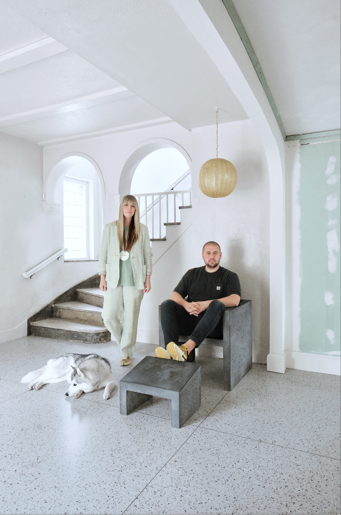 The couple and founders of Bodega Ltd.—a multidisciplinary creative studio with clients ranging from Nike to a local Hmong cuisine pop-up called Union Kitchen—christened the 4,000-square-foot space Maison Bodega when they bought it and started planning how to maximize every inch. They envisioned public events and retail experiences on the ground floor (made possible by favorable zoning laws and a 14-spot parking lot), a salon-style entertaining area on the second (which could double as their workspace), and a serene apartment to call home on the top. Just as the corner-store namesake of their company stocks a variety of goods, the duo designs across interiors, websites, and workshop activations, opting to collaborate with brands that seek a holistic, “world building” approach, says Harris. “Everything is an opportunity to create your story and apply your values to it. Everything is connected.”