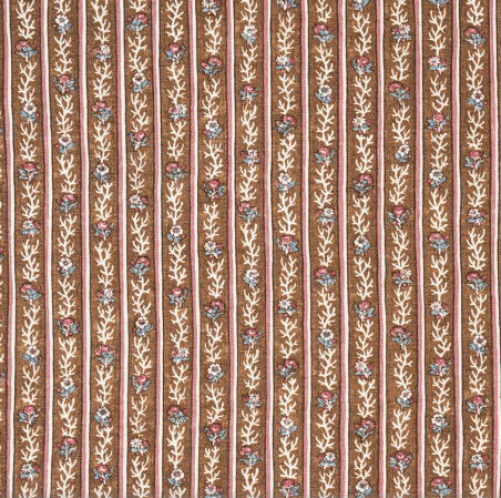 In the guest bathroom, a pair of shell-shaped brass sconces and botanical sketches Roe and Hunkin bought from a street vendor by the Seine in Paris inspired an aquatic garden theme. “Sometimes when you decorate a house, it’s actually the memories that things evoke that are most important,” says the entrepreneur. The climbing vine wallpaper from Living Quarters features snails and shells, while the Lisa Fine sink skirt, which is attached to the basin with simple Velcro—“You can remove it, wash it, put it back, hide all your junk underneath,” notes Roe—depicts tiny pieces of coral. Beadboard painted in a reddish purple–brown tone ties the two motifs together.