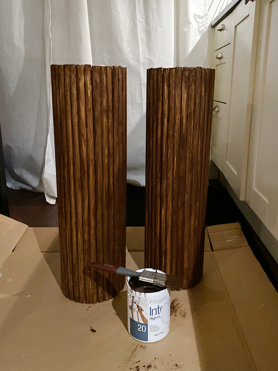 - Paint of your choosing (she chose a brown hue to mimic a dark wood finish)