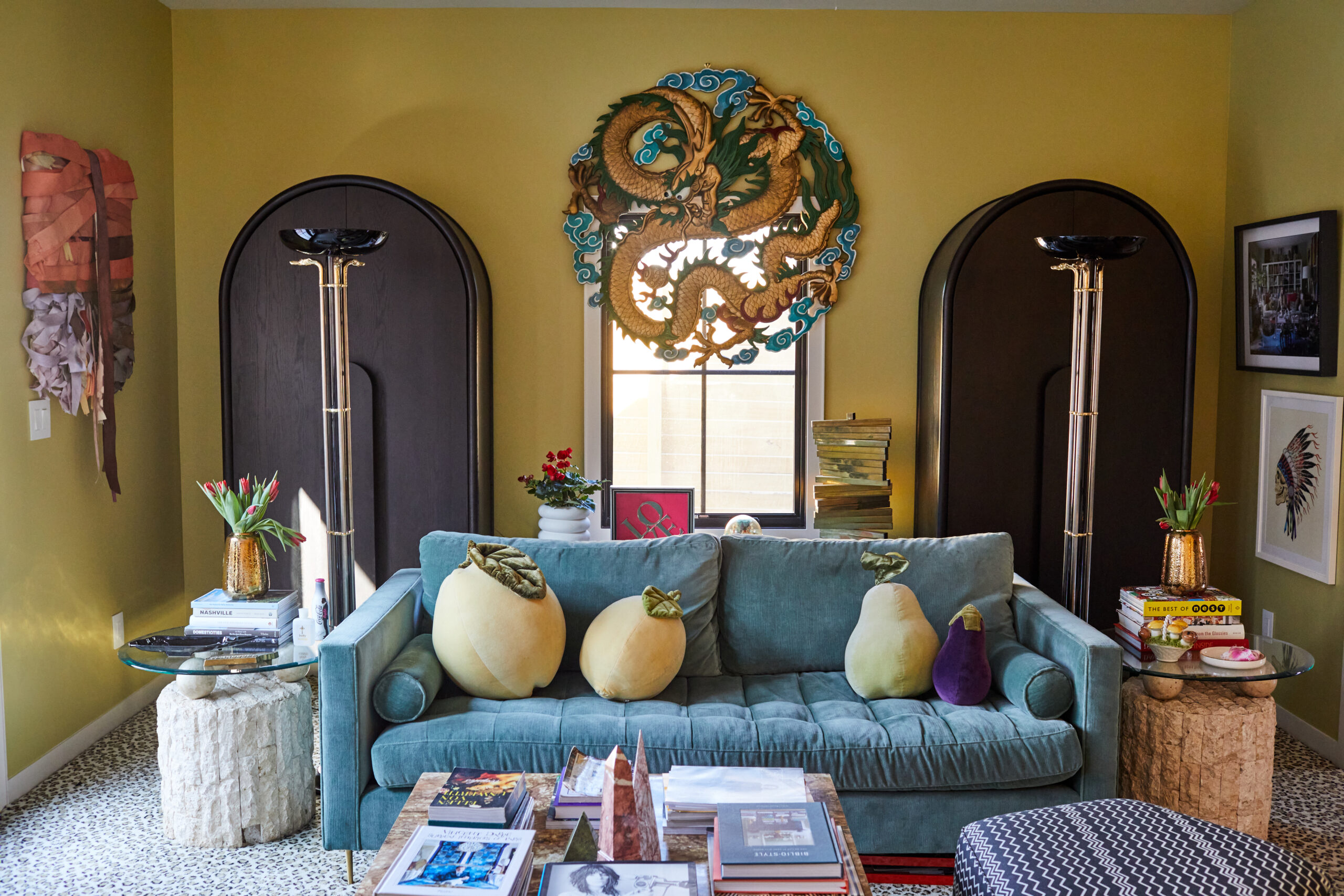 Callaway knew when she bought the property back in 2010 that the house was not all that well made. It had been added on to at least five times over the decades, and many of said additions were clearly DIYs. “I went out of town when they started tearing open the house, and my contractor, Aaron Rosburg, sent me videos of him just kicking down the walls—that was all it took,” she says. But Callaway knew she could make the one-story house into something special, so she sketched out a simpler, L-shaped layout on the back of a napkin one night. And thanks to Nashville’s huge surge in property value, she was able to make all the upgrades mainly on equity. “It’s truly a maximalist house,” says Callaway. “There is nothing small about it.”