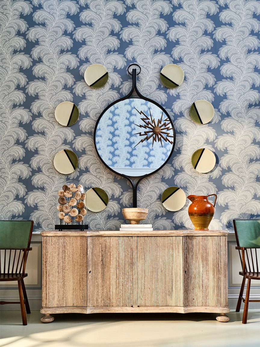 It can be tempting to try to match a pattern to a couch you already have, but Kemble says picking your print first is the wiser move. “It’s easy to find furniture,” she says. “But there’s only one just-right wallpaper for a room.”