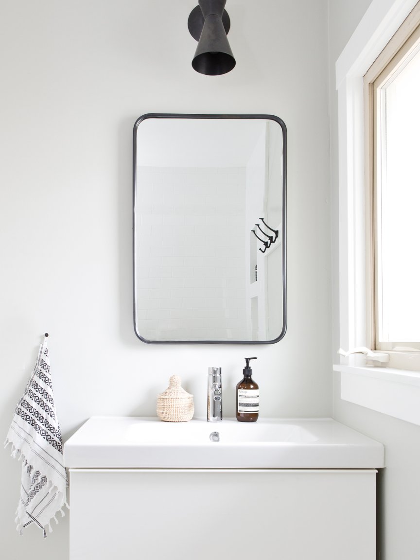 Is your toothbrush or shaving cream bottle too tall? Don’t be afraid to grab a screwdriver and readjust the shelving to meet your needs. Make the most of each ledge’s height by getting rid of excess packaging.