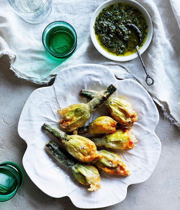Arguably one of the more popular ingredients one may come across in Rome, fried zucchini flowers are an elusive dish limited to just a fraction of time in the summer months. We’re whipping up this take from Gourmet Traveller that features ricotta, parmesan, and a mint and anchovy sauce.