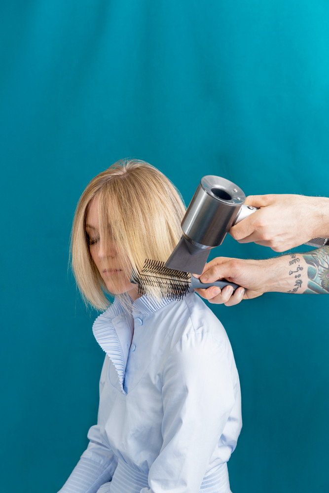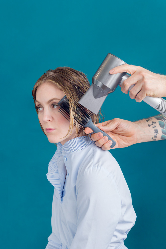 Use a blow dryer with a nozzle attached (Reyman swears by the Dyson Supersonic Dryer). “The nozzle helps direct the heat and concentrate the airflow, so it’s more of a refined blowdry.”