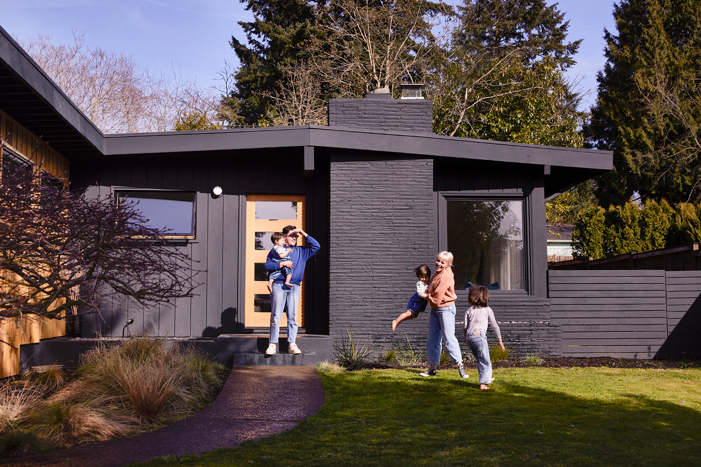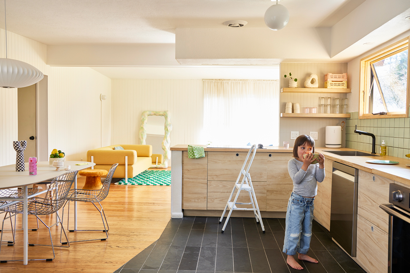 Working from her mid-century Portland, Oregon home has also allowed her to see her husband, Jorge, a freelance filmmaker and director of photography, and daughters Zara (5), Billie (2), and Margot (18 months) more. “It’s important to us that our kids are raised by George and me, equally, and we get to spend time with them while pursuing our creative passions,” says Brill. So the major life change called for some much-needed cosmetic updates around the house.