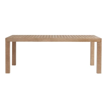 If you’re looking for a show-stopping backyard moment, design darling India Mahdavi has you covered. Everyone at Domino is obsessed with her bold, inventive pieces, and right now, we’re focused on the black and pink stackable Afro chair that will bring an unexpected pop of color to your backyard. When you opt for this kind of statement piece, keep the rest simple. Think of a teak table as the classic white tee of outdoor furniture: dependable, sturdy, and willing to stand back and let your accent accessories shine.