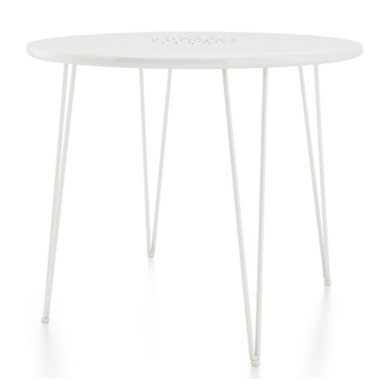 We’re noticing a trend in black and white outdoor furniture, and it might just be because crush-worthy pieces like these are irresistible. CB2’s handwoven chair is graphic enough to add dimension but clean-cut enough to support a neutral palette, while its hairpin-legged partner-in-crime is a “staple of well-mannered gardens” and will last you a lifetime on a balcony, patio, or corner of your sprawling yard.