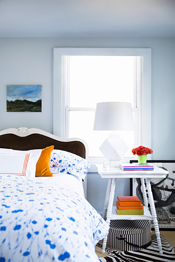 stark contrast After stripping the house of timeworn fixtures and finishings, Patrick’s first order of business was to infuse its vintage lines with color. “I’m drawn to strong, expressive shades,” he explains. Though he first painted the house’s common rooms either black or white, he then broke loose in riotous color—not with the sort of muted hues one often associates with traditional interiors, but with a bold, urbane palette that ranges from vivid fuchsias and daffodil yellows to soulful ceruleans and citrines. “Patrick’s point of view is so sophisticated and informed,” Patricia says. “He gives us the confidence to think outside the box as we continue to decorate our home.”