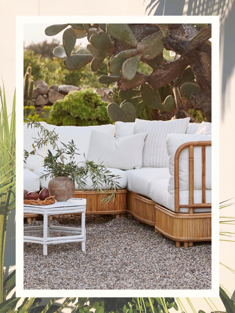 Transport your open-air party to the tropics by hanging shelves above it to display small potted plants. A work-around if you don’t have a wall to build off of: tall bamboo shoots.