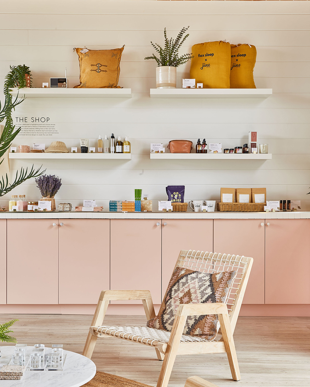 Benjamin Moore’s peachy blush Apricot Beige has become the renovators’ go-to paint color for basically everything, including cabinets. Peep the hue in the Sauble Beach shop where the pair hacked simple IKEA cupboards by swapping out the doors for flat fronts from Kitch, a brand based in Canada that is similar to such companies as Semihandmade and Nieu. Opting for Kitch’s sleek style in a plain wood finish, though, meant they could further customize the doors. Think of it as a hack on top of a hack.