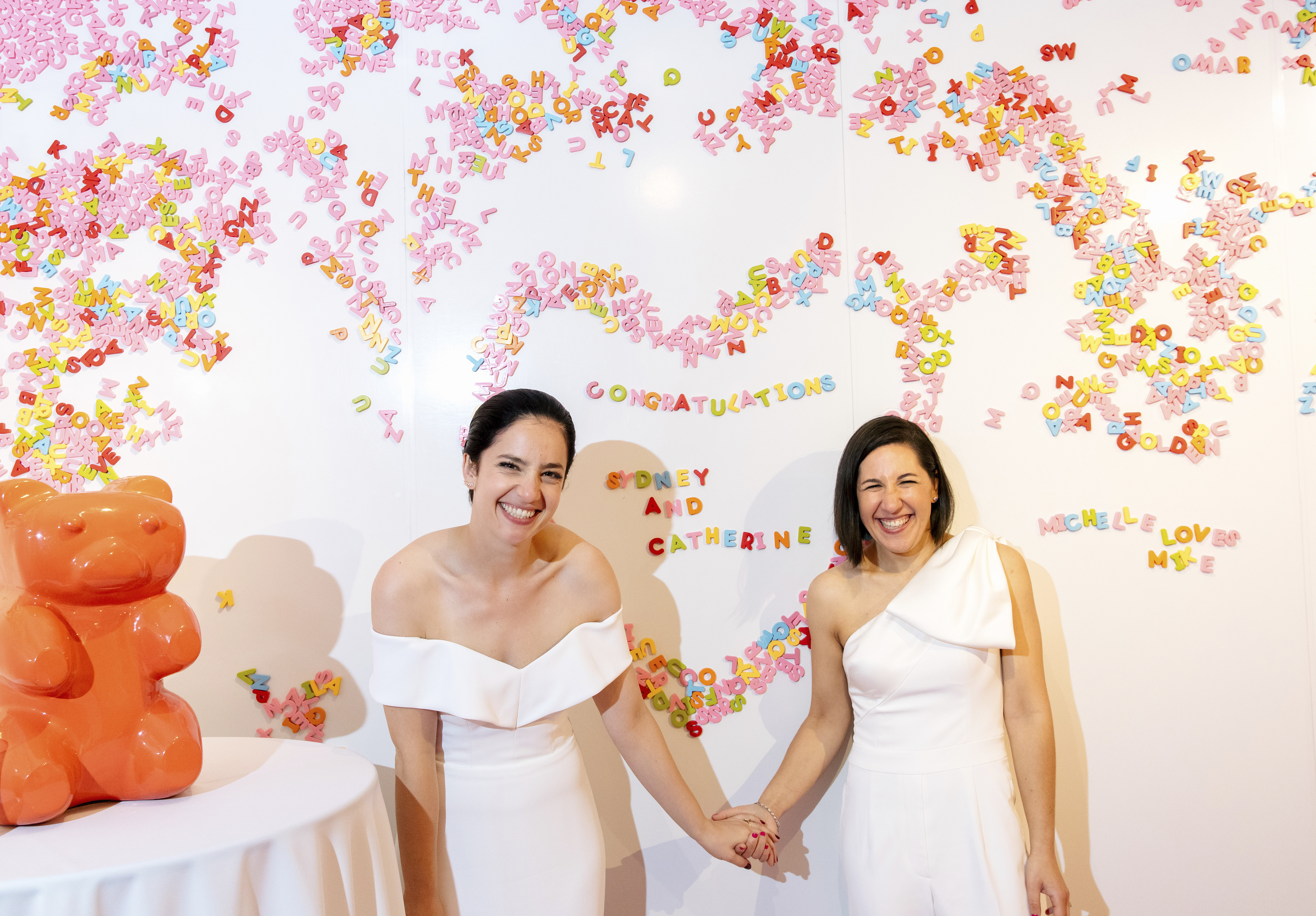 The Museum of Ice Cream was the obvious wedding choice for Catherine Meyer, a first-grade teacher, and Sydney Meckler, a pediatric nurse practitioner—two raging sweet-tooths whose relationship has been celebrated with dessert hunting and candy consumption, and who got engaged over DIY sundaes on their Oakland, California, deck. They just didn’t know it right away.
