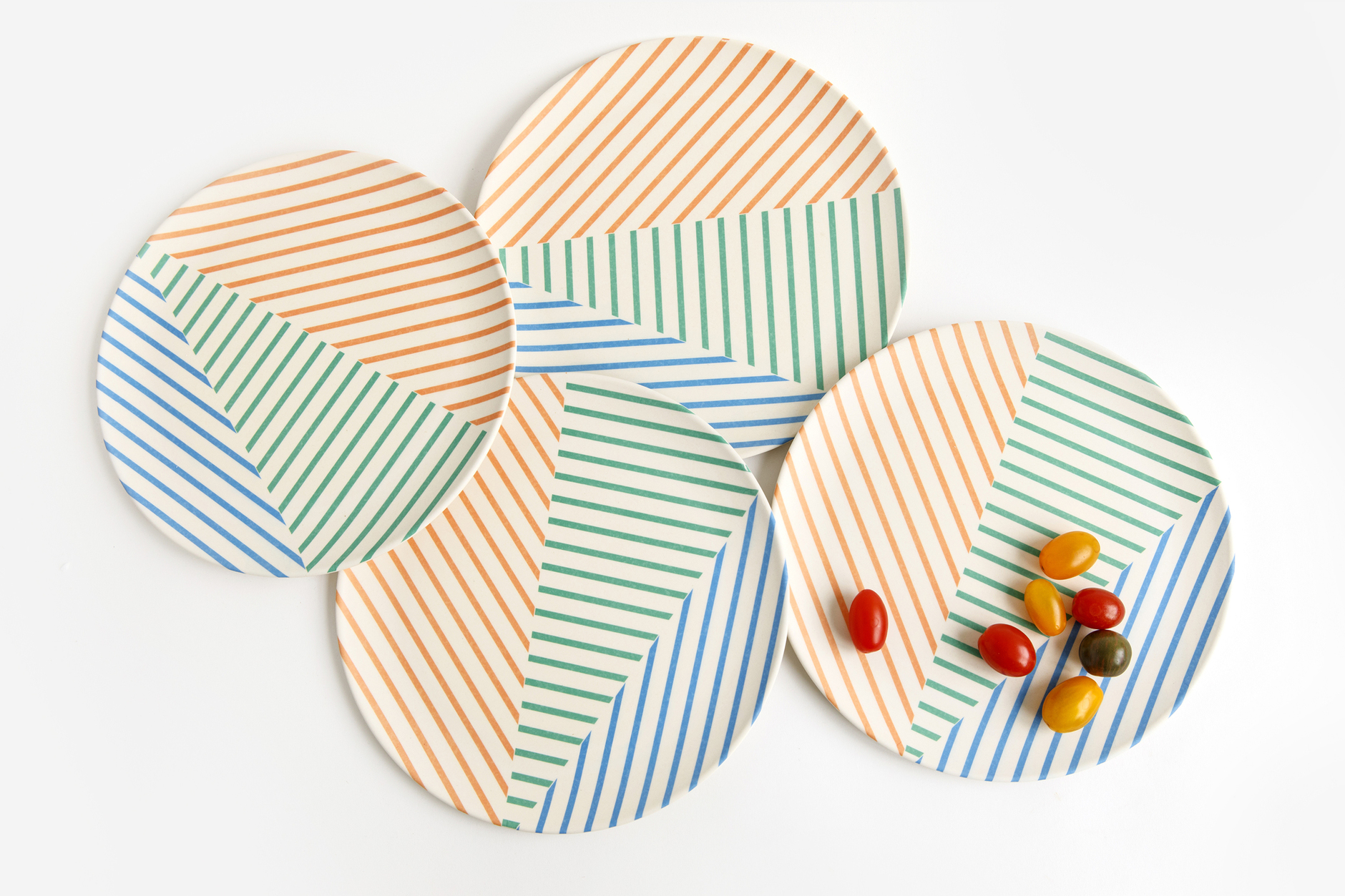 Even timeless patterns can sometimes feel tired. Example: Stripes are a classic, but it’s very easy to end up with a space that looks more like a yacht club than the contemporary hangout you were hoping for. Luckily the present (and future) of striped decor is more colorful, playful, and unexpected than ever—and we have some ideas for how to bring the traditionally nautical style home in a decidedly modern way. We’re talking Moroccan rugs, hand-painted pottery, and bubblegum pink cabana stripes.
